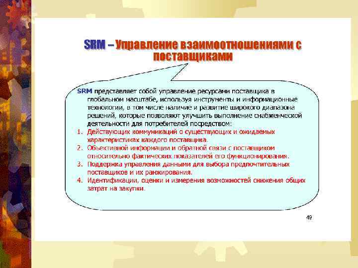 УПРАВЛЕНИЕ ВЗАИМООТНОШЕНИЯМИ С ПОСТАВЩИКАМИ В отношениях между структурами бизнеса одним из самых важных направлений становится партнёрство с поставщиками. Некоторые особенности современного бизнеса, такие, как укороченный жизненный цикл продукции и глобальная конкуренция, делают ведение бизнеса слишком сложным и дорогостоящим делом, чтобы компания могла заниматься им полностью самостоятельно.