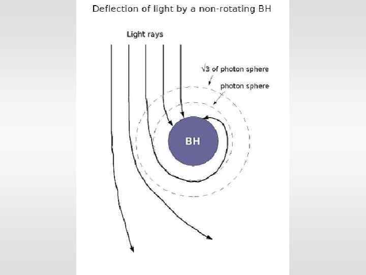 Фотонная сфера Горизонт событий Свет движется по круговой орбите 1. 5 rg rg r=0 Сингулярность