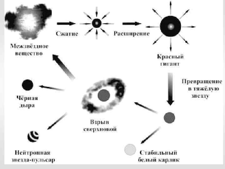 Нейтронная звезда, пульсар Очень быстро вращаются – период до нескольких секунд Плотность 1014 г/см 3 как у ядер атомов
