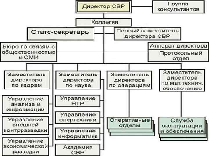 К органам федеральной службы безопасности относятся: • • федеральный орган исполнительной власти в области обеспечения безопасности; управления (отделы) федерального органа исполнительной власти в области обеспечения безопасности по отдельным регионам и субъектам РФ (территориальные органы безопасности); управления (отделы) федерального органа исполнительной власти в области обеспечения безопасности в Вооруженных Силах РФ, других войсках и воинских формированиях, а также в их органах управления (органы безопасности в войсках); управления (отделы, отряды) федерального органа исполнительной власти в области обеспечения безопасности по пограничной службе (пограничные органы); другие управления (отделы) федерального органа исполнительной власти в области обеспечения безопасности, осуществляющие отдельные полномочия данного органа или обеспечивающие деятельность органов федеральной службы безопасности (другие органы безопасности); авиационные подразделения, центры специальной подготовки, подразделения специального назначения, предприятия, образовательные учреждения, научно-исследовательские, экспертные, судебно-экспертные, военно-медицинские и военно-строительные подразделения и иные учреждения и подразделения, предназначенные для обеспечения деятельности федеральной службы безопасности. Территориальные органы безопасности, органы безопасности в войсках, пограничные органы и другие органы безопасности являются территориальными органами федерального органа исполнительной власти в области обеспечения безопасности и находятся в его прямом подчинении.