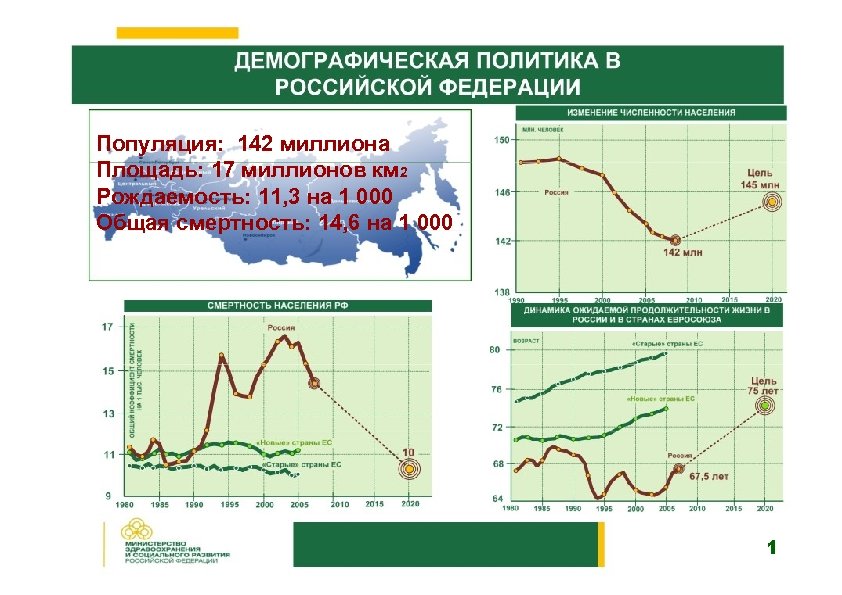 Популяция: 142 миллиона Площадь: 17 миллионов км 2 Рождаемость: 11, 3 на 1 000 Общая смертность: 14, 6 на 1 000 1
