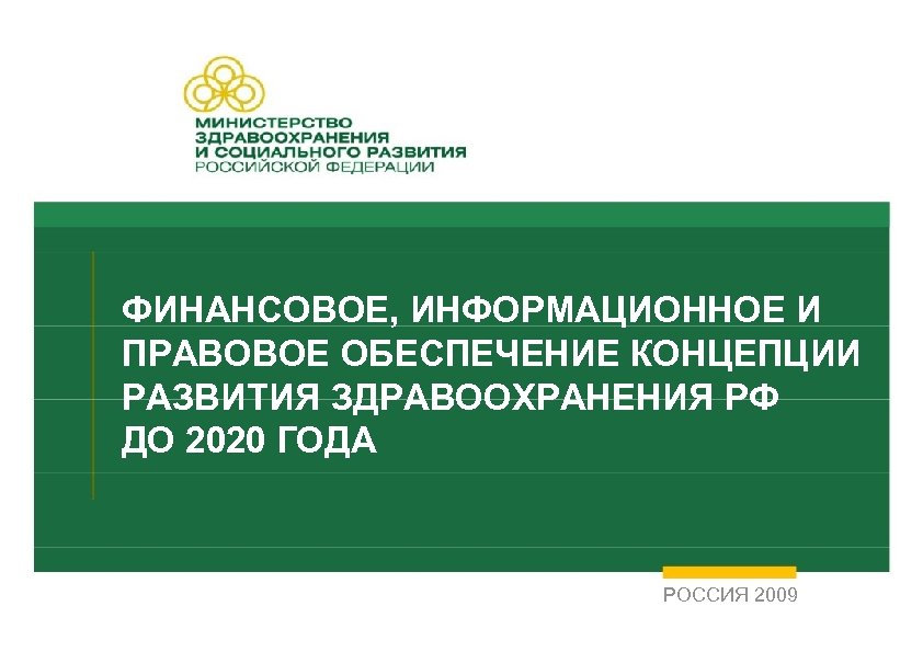 ФИНАНСОВОЕ, ИНФОРМАЦИОННОЕ И ПРАВОВОЕ ОБЕСПЕЧЕНИЕ КОНЦЕПЦИИ РАЗВИТИЯ ЗДРАВООХРАНЕНИЯ РФ ДО 2020 ГОДА РОССИЯ 2009