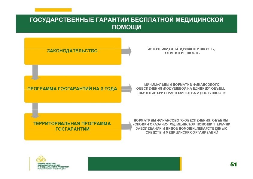 ЗАКОНОДАТЕЛЬСТВО ИСТОЧНИКИ, ОБЪЕМ, ЭФФЕКТИВНОСТЬ, ОТВЕТСТВЕННОСТЬ ПРОГРАММА ГОСГАРАНТИЙ НА 3 ГОДА МИНИМАЛЬНЫЙ НОРМАТИВ ФИНАНСОВОГО ОБЕСПЕЧЕНИЯ (ПОДУШЕВОЙ, НА ЕДИНИЦУ), ОБЪЕМ, ЗНАЧЕНИЕ КРИТЕРИЕВ КАЧЕСТВА И ДОСТУПНОСТИ ТЕРРИТОРИАЛЬНАЯ ПРОГРАММА ГОСГАРАНТИЙ НОРМАТИВЫ ФИНАНСОВОГО ОБЕСПЕЧЕНИЯ, ОБЪЕМЫ, УСЛОВИЯ ОКАЗАНИЯ МЕДИЦИНСКОЙ ПОМОЩИ, ПЕРЕЧНИ ЗАБОЛЕВАНИЙ И ВИДОВ ПОМОЩИ, ЛЕКАРСТВЕННЫХ СРЕДСТВ И МЕДИЦИНСКИХ ОРГАНИЗАЦИЙ 51