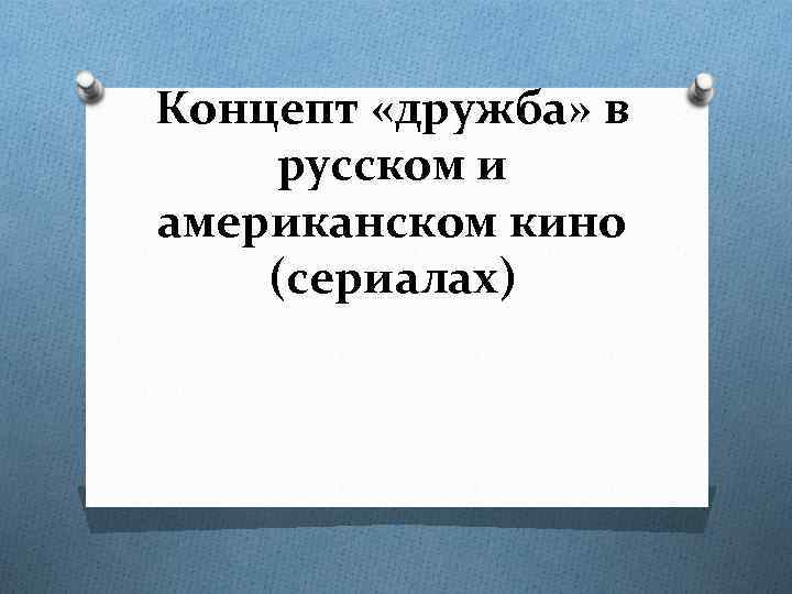 Концепт «дружба» в русском и американском кино (сериалах)