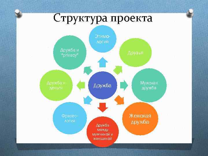 Структура проекта Этимология Дружба и “privacy” Дружба и деньги Фразеология Друзья Дружба между мужчиной и женщиной Мужская дружба Женская дружба