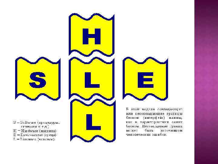 МОДЕЛЬ «SHEL» S (Software) правила, Руководства, символы H (Hardware) машина E (Environment) среда L (Liveware) человек