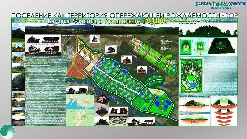 БАЙКАЛ-ТУНКА-ХУБСУГУЛ ПАРК ЕДИНЕНИЯ Развивая концепцию проекта «Зеленое ожерелье Байкала» нами рассмотрена транс граничная территория-Тунка ( Тункинский район), которая должна стать объединяющей территорией: идеологий, культурных, природных технологий, отдыха и спорта - единения народов, проживающих не только на Байкальской природной территории, но и в России, Монголии. , и во всем Мире. Идеология проекта строится на очень простых, понятных (в тоже время фундаментальных) природных основах: пермакультурный дизайн, агро-, эко-туризм, планирование территорий по принципам БИОСФЕРНОГО ПЛАНИРОВАНИЯ. Учитываются также такие природные явления как паттерны и синергия. Проект рассчитан на единение народов проживающих на территории района и участвующих в реализации проекта. В целях устойчивого, комплексного и динамичного развития территорий района проектом предлагается на основе БИОСФЕРНОГО ПЛАНИРОВАНИЯ сформировать 5 эко-социальных округов (ЭСО) путем объединения МО: 1. ТОРы - Торского, Зун-Муринского и Далахайского МО, 2. Хоймор - Аршанского, Толтойского, Галбайского и Тункинского МО, 3. ЖЕМЧУГ - Жемчугского и Харбятского МОэ 4. БАЙТОГ - Кыренского и МО «Хужиры, 5. МУНКУ-САРДЫК - Мондинского, Хойто-Гольского и Туранского МО. Хозяйственная деятельность в образованных округах, ориентированная на природные Технологии: зеленую экономику, пермакультурный дизайн, экотуризм, агротуризм, БИОСФЕРНОЕ ПЛАНИРОВАНИЕ, помноженное на позитивную энергию народа должна дать положительные результаты в кратчайшие сроки.