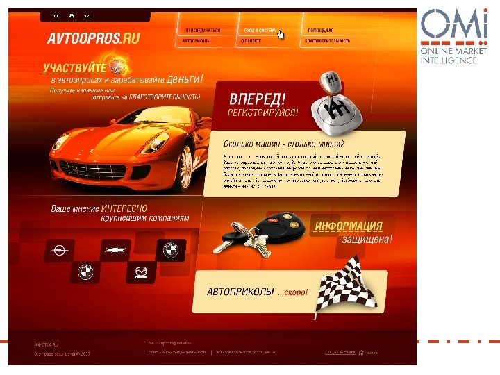 Эмпирическая основа • Исследование удовлетворенности участников онлайн панели Anketka. ru Три волны: Февраль, Май, Сентябрь 2008, случайная национальная выборка: N=650 онлайн интервью в каждой волне, Россия • Кейсы онлайн панелей Anketka. ru and Avto. Opros. ru