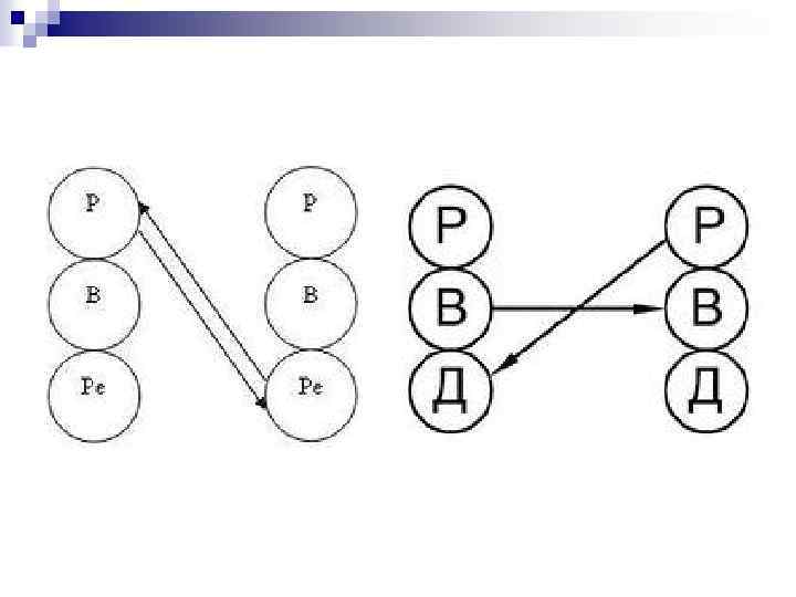 Алгоритм трансактного анализа n n n а) б) Составить матрицу Выделить субъекты взаимодействия Уяснить, с каких позиций выступает каждый из субъектов: Р, В, Д. Уяснить направленность позиции каждого субъекта и обозначить стрелками в матрице. По матрице определить расхождение в позициях. Сделать вывод: трансакция дополняющая - отсутствие конфликтной ситуации; трансакция перекрещивающаяся - наличие конфликтной ситуации.