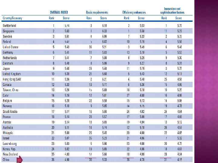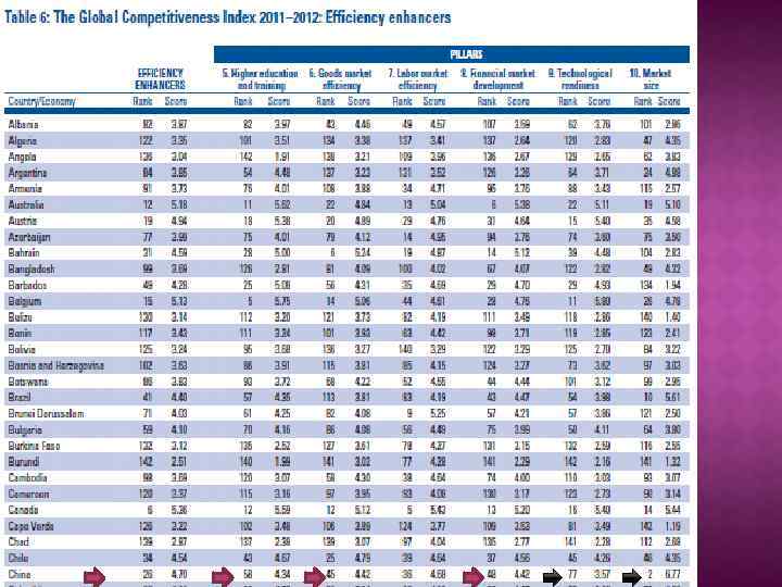 Усилители эффективности Высшее образ. и проф. подготовка эффектив-ь рынка товаров и услуг эффек-ь рынка труда развитие финансового рынка технологический уровень размер рынка 6. 6 4. 5 4. 1 4. 7 4. 2 4. 1 3. 6 4. 4 4. 7 4. 3 3. 4 3. 2 2008 -2009 6. 8 6. 7 6. 6 2009 -2010 4. 3 4. 4 3. 6 3. 4 2010 -2011 -2012