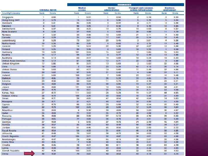Индекс ETI 4. 6 4. 5 4. 4 4. 3 4. 2 4. 1 4 3. 9 3. 8 3. 7 3. 6 Доступ к рынкам 2010 Управление на границе 3. 9 4. 5 Транспортная и информационная инфраструктура 4. 1