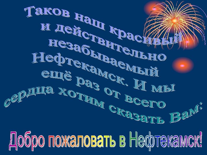 Вновь прибывшему гостю не приходится долго угадывать, откуда появилось название города. Название «Нефтекамск» образовано из двух слов: «нефть» и «Кама» , т. к. наш город богат нефтью и лежит на реке Кама.