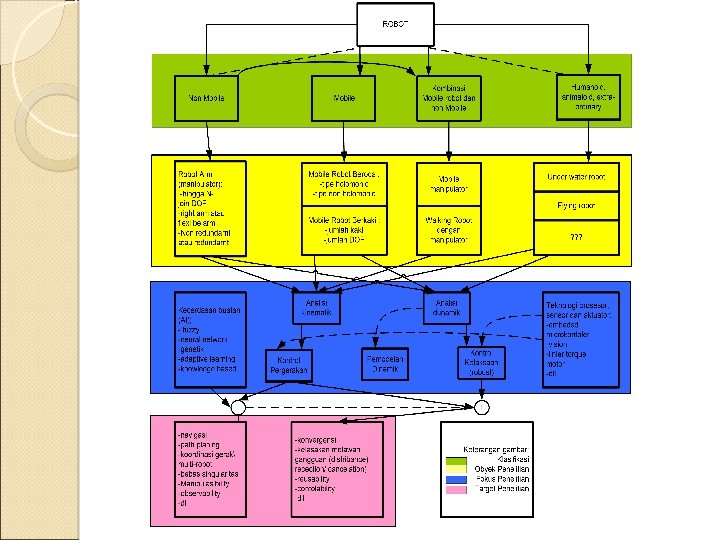 Mobile Robot Beroda ◦ Tipe holonomic ◦ Tipe non holonomic Mobile Robot Berkaki ◦ Jumlah Kaki Bi-ped, Hexa-Pod ◦ Jumlah DOF (sendi kaki)