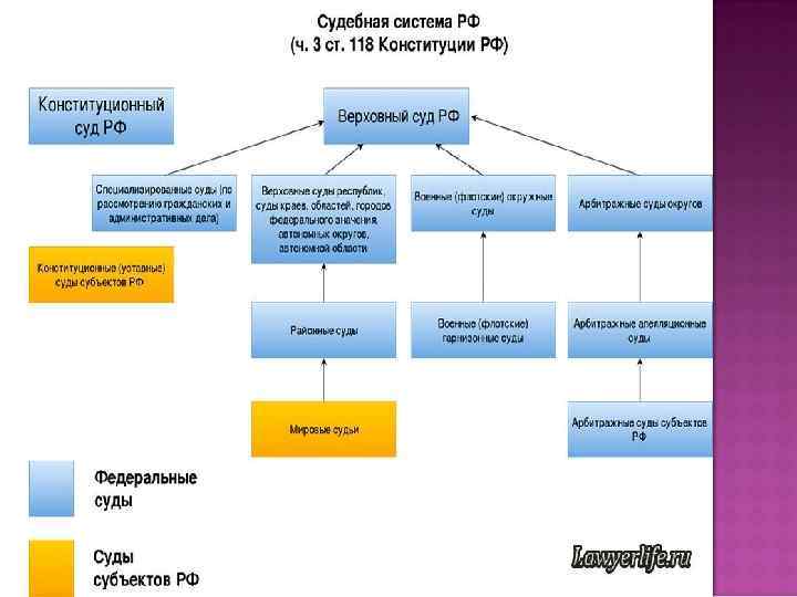 1. Верховный Суд Российской Федерации является высшим судебным органом по гражданским, уголовным, административным , арбитражным и иным делам, отнесенным к компетенции судов общей юрисдикции, осуществляет в предусмотренных федеральным законом процессуальных формах судебный надзор за их деятельностью и дает разъяснения по вопросам судебной практики. 2. Верховный Суд Российской Федерации в пределах своей компетенции рассматривает дела в качестве суда первой, апелляционной, кассационной, надзорной инстанций и по новым или вновь открывшимся обстоятельствам в порядке, предусмотренном федеральными законами. Полномочия, порядок образования и деятельности Верховного Суда РФ определяются КОНСТИТУЦИЕЙ РФ, ФКЗ- «О СУДЕБНОЙ СИСТЕМЕ РФ» , «О СУДАХ ОБЩЕЙ ЮРИСДИКЦИИ В РФ» , «О ВОЕННЫХ СУДАХ РФ» , ФЗ – «О МИРОВЫХ СУДЬЯХ В РФ» , «ГРАЖДАНСКИЙ ПРОЦЕССУАЛЬНЫЙ КОДЕКС РФ» и т. д. Председатель Верховного Суда РФ – Лебедев Вячеслав Михайлович Москва, Поварская ул. , д. 15.