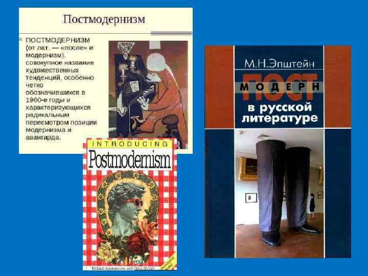 Авангардистской установке на новизну противостоит здесь стремление включить в современное искусство весь опыт мировой художественной культуры путем ее ироничного цитирования Постмодернистская чувствительность – это ощущение мира как хаоса, где отсутствуют какие-либо критерии ценностной и смысловой ориентации.