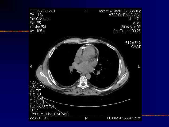 Диагноз констриктивного перикардита n n n Кальцификация перикарда Утолщение перикарда n n > 3, 5 мм > 6 мм – высоко специфично n n n Рентгеноскопия (графия) Эхо. КГ КТ МРТ Отсутствуют в 1820% Talreja DR et al. Circulation 2003; 108: 1852 -7