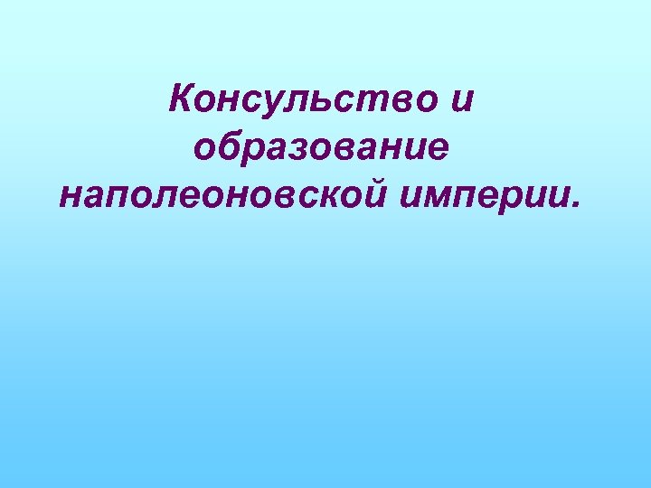 Консульство и образование наполеоновской империи.