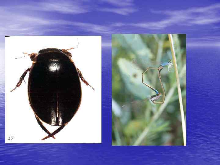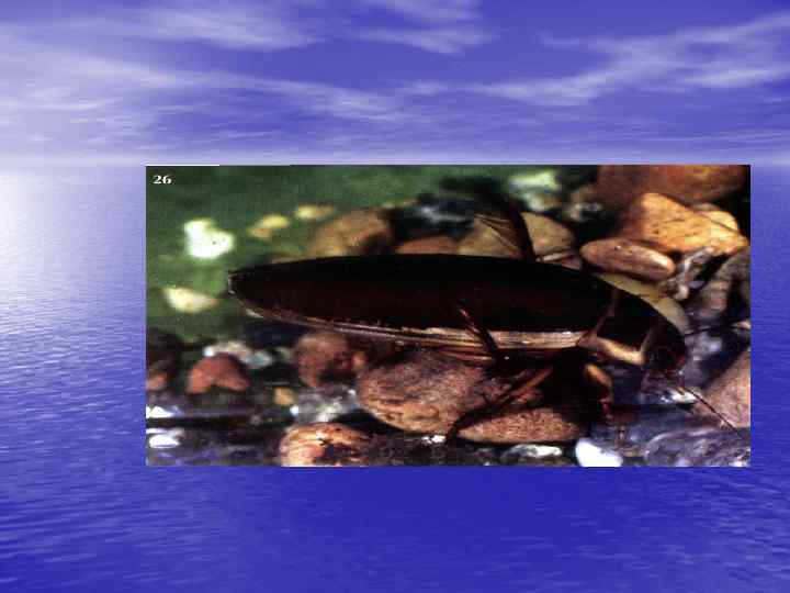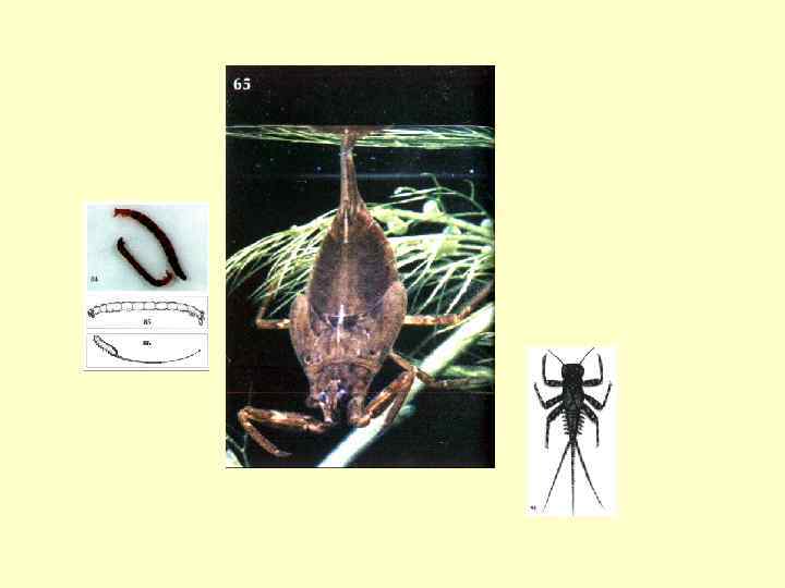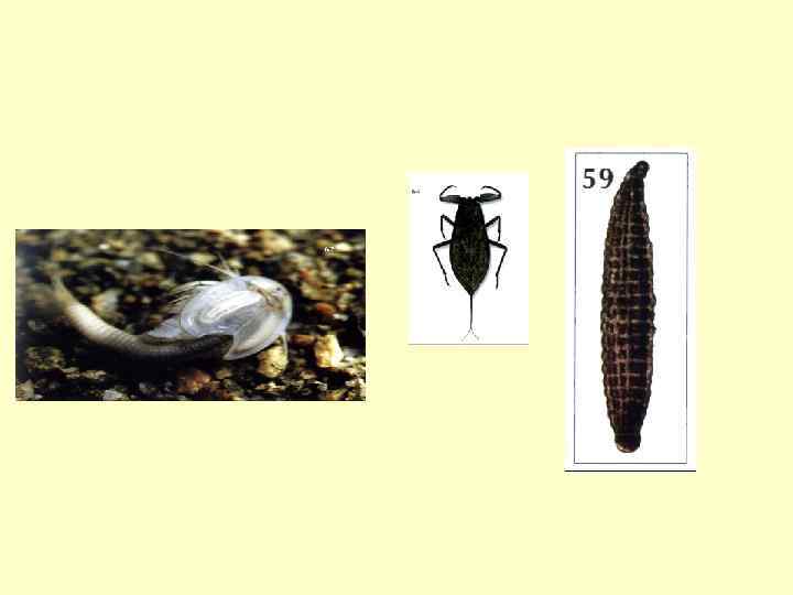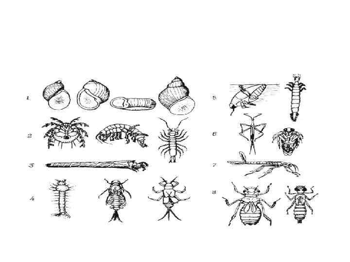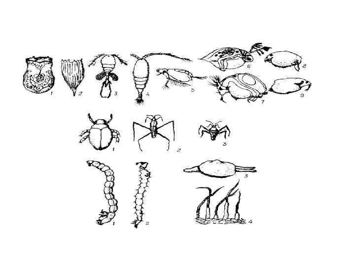 рачок Artemia Гипергалинные озера ( «континентальные» ) образовались изначально на суше, другие отделившиеся морские лиманы. Фауна озер бедная – планктонные фильтрующие беспозвоночные (коловратки, ракообразные) и по большей части нехищные донные животные (бокоплавы и другие ракообразные, многощетинковые черви, личинки комаров, жуки). . В самом соленом (184 340%0) оз. Кояшское (Крым) встречались лишь представители зоопланктона – рачок Artemia Численность животных, их биомасса и количество видов в озерах зависели в первую очередь от величины первичной продукции. Вторым по значимости фактором оказалась соленость: при увеличении солености видовое богатство, напротив, снижалось вплоть до полного исчезновения донных животных.