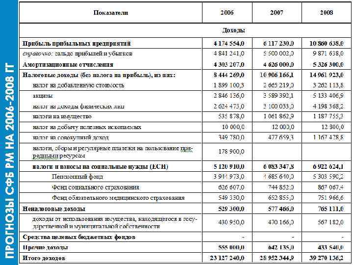 (тыс. руб. ) 2006 2007 2008 ДИНАМИКА ПРИБЫЛЬНЫХ ПРЕДПРИЯТИЙ 4 174 554 6 117 230 10 860 638 160, 16% АМОРТИЗАЦИОННЫЕ ОТЧИСЛЕНИЯ 4 303 207 4 626 000 5 326 300 23, 78% НАЛОГОВЫЕ ДОХОДЫ (БЕЗ НПО) 8 444 269 10 906 166 14 961 923 77, 18% НАЛОГИ И СБОРЫ НА СОЦИАЛЬНЫЕ НУЖДЫ 5 120 910 6 083 347 6 922 624 НЕНАЛОГОВЫЕ ДОХОДЫ 529 300 577 466 765 111 ПРОЧИЕ ДОХОДЫ 555 000 642 135 433 540 35, 18% 44, 55% 21, 88%