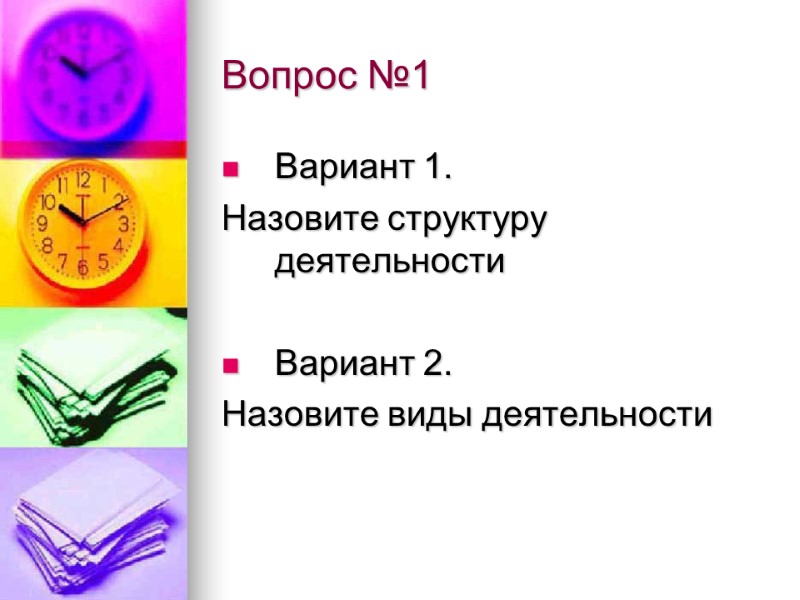 Вопрос №1 Вариант 1. Назовите структуру деятельности Вариант 2. Назовите виды деятельности