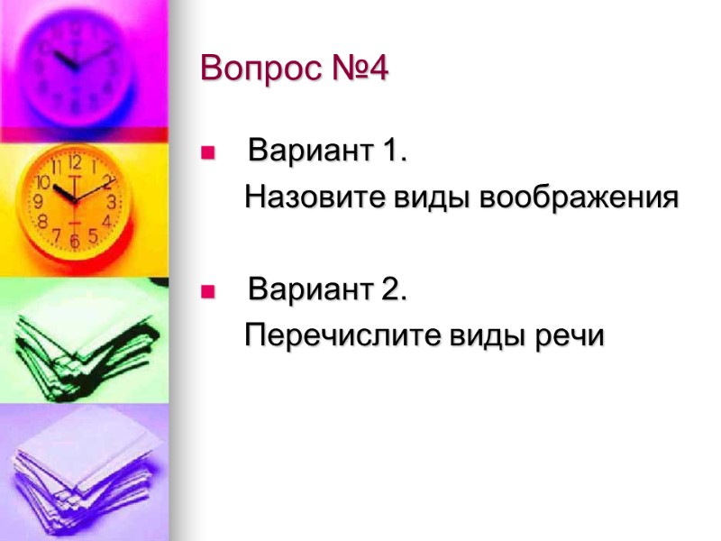 Вопрос №4 Вариант 1. Назовите виды воображения Вариант 2. Перечислите виды речи
