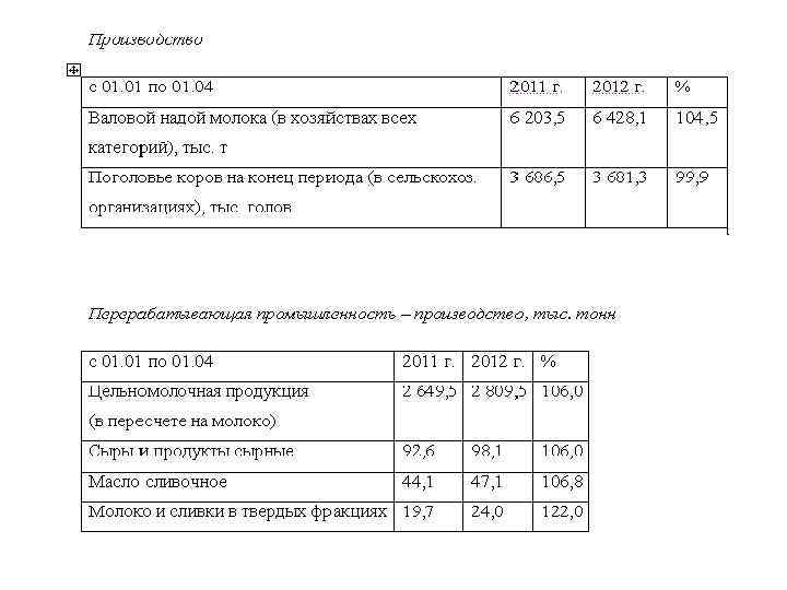 Объём производства молока 2009 -2012 гг. в РФ