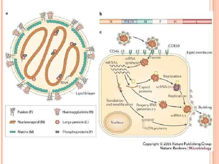 Лабораторная диагностика. Исследуемый материал — отделяемое носоглотки, соскобы с кожи из участка сыпи, кровь, моча, в летальных случаях — мозговая ткань. Экспресс диагностика основана на обнаружении специфичес кого антигена в РИФ, а также антител класса lg. М с помощью ИФА. Для выделения вируса используют культуру клеток. Идентифи кацию выделенного вируса проводят с помощью РИФ, РТГА, РН в культуре клеток. Для серологической диагно стики используют РН, РСК, РТГА.
