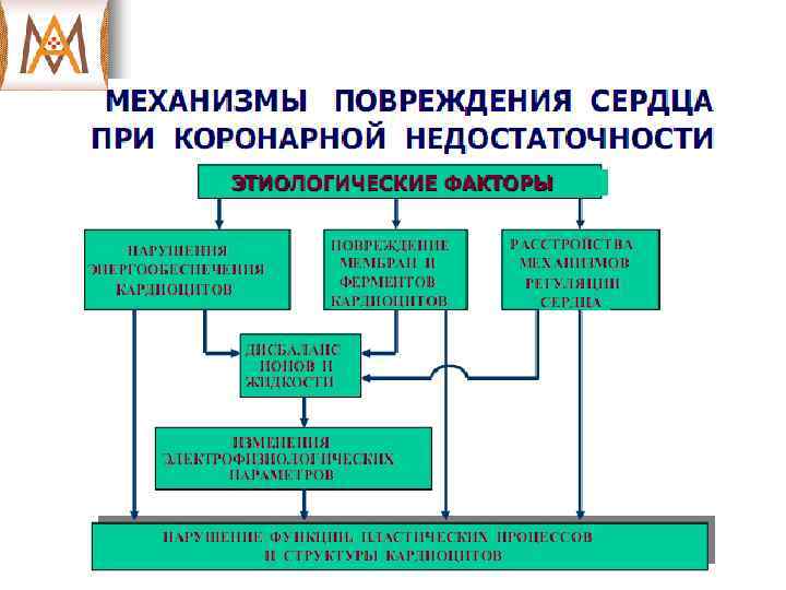 Вопросы занятия: Ш Механизмы поддержания гомеостаза в системе кровообращения. Ш Коронарная недостаточность, виды, этиология. Механизмы повреждения миокарда при коронарной недостаточности. Ш Ишемическое повреждение сердца, причины и механизмы развития. Ш Стенокардия, инфаркт миокарда как проявления ишемического повреждения сердца. Биохимические маркеры ишемии и цитолиза кардиомиоцитов. Ш Сердечная недостаточность, патофизиологические варианты. Некоронарогенные формы повреждения сердца. Ш Миокардиальная форма сердечной недостаточности. Этиология, патогенез. Ш Перегрузочная форма сердечной недостаточности. Этиология, патогенез. Механизмы срочной и долговременной адаптации сердца к перегрузкам. Гетеро- и гомеометрические механизмы компенсации. Тоногенная и миогенная дилятация сердца. Ш Гипертрофия миокарда. Клеточные механизмы патогенеза. Механизмы декомпенсации. Ш Электрокардиографические показатели при гипертрофии и ишемии миокарда. Ш Патогенетические принципы терапии сердечной недостаточности.
