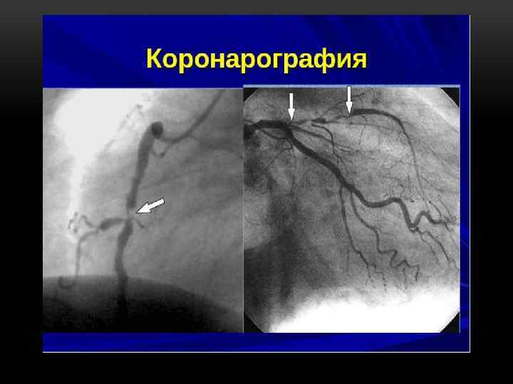 КАГ q Являясь “золотым стандартом” в диагностике ИБС, коронароангиография позволяет определить характер, локализацию и степень атеросклеротического сужения КА, протяженность патологического процесса, состояние коллатерального кровообращения, а также выявить некоторые врожденные пороки развития венечных сосудов, например, аномальное отхождение КА или коронарный артериовенозный свищ. q Кроме того, при выполнении КАГ, как правило, производят левую вентрикулографию, что дает возможность оценить ряд важных гемодинамических параметров. Полученные при КАГ данные очень важны при выборе метода хирургической коррекции обструктивных поражений КА.