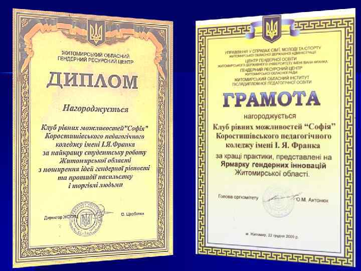 КОРОСТИШІВСЬКИЙ ПЕДАГОГІЧНИЙ КОЛЕДЖ ІМЕНІ і. Я. ФРАНКА Клуб рівних можливостей “СОФІЯ”