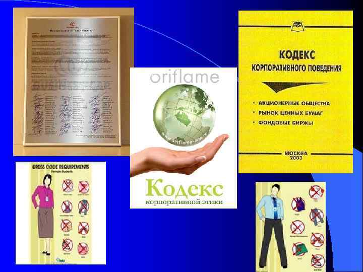 Внутрикорпоративные кодексы содержат в себе следующие части: Идеологическую, Ø куда входят следующие разделы: Миссия компании Ø Цели компании (стратегические, тактические, оперативные, локальные, частные) Ø Ценности компании Ø Базовые принципы компании