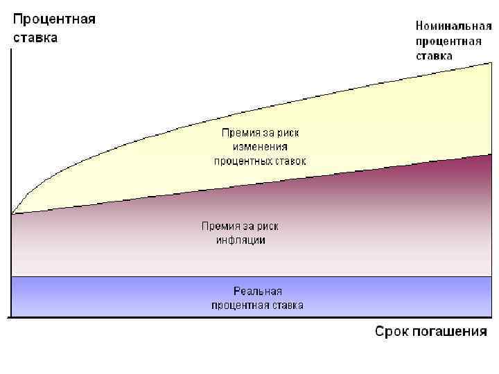 • Взаимосвязь между процентными ставками по долговым ценным бумагам, имеющим разные периоды погашения. Графически их взаимодействие может быть представлено в виде КРИВОЙ ДОХОДНОСТИ. Обычно кривая доходности растет. Долгосрочные процентные ставки обычно выше, чем краткосрочные, инвертированная (перевернутая) кривая доходности характеризует ситуацию, когда ставки по краткосрочным инструментам выше, чем по долгосрочным. Кривая доходности используется для прогнозирования процентных ставок, выбора ценных бумаг, оценки новых эмиссий и для др. целей