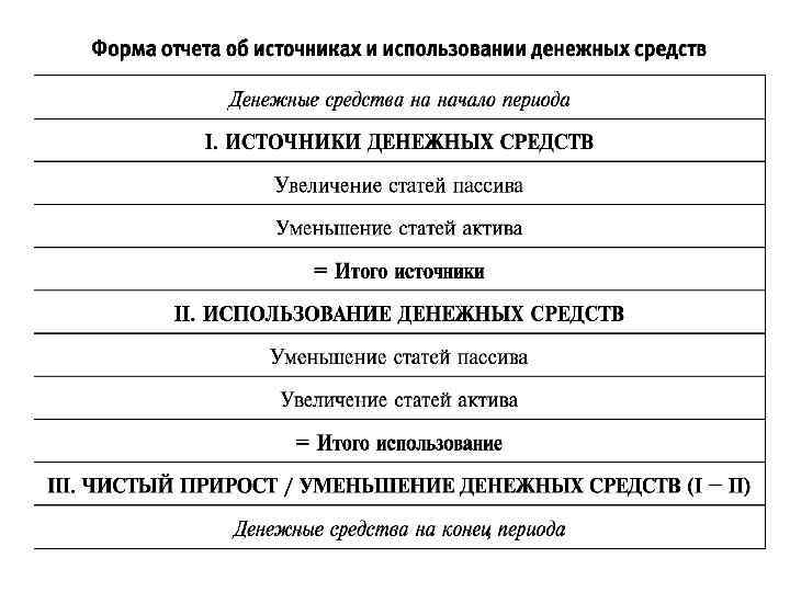 Отчет о движении денежных средств • Отчет о движении денежных средств (Cash Flow Statement) – это отчет, составленный по данным бухгалтерского учета и характеризующий имевшие место в отчетном периоде источники появления и направления использования денежных средств в разрезе текущей, инвестиционной и финансовой деятельности.