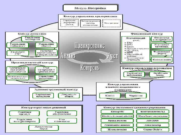 Структура MRPII системы • • • Планирование развития бизнеса (составление и корректировка бизнес плана) Планирование деятельности предприятия Планирование продаж Планирование потребностей в сырье и материалах Планирование производственных мощностей Планирование закупок Выполнение плана производственных мощностей Выполнение плана потребности в материалах Осуществление обратной связи