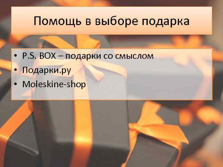 Помощь в выборе подарка • P. S. BOX – подарки со смыслом • Подарки. ру • Moleskine-shop