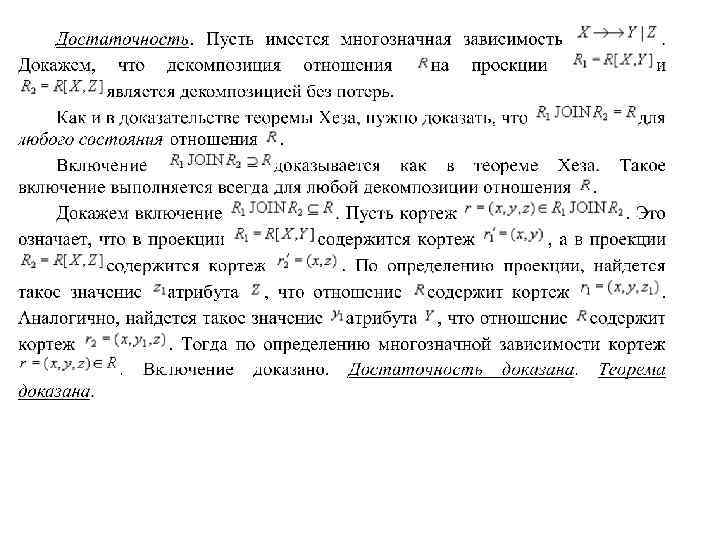 Корректность процедуры нормализации - декомпозиция без потерь.