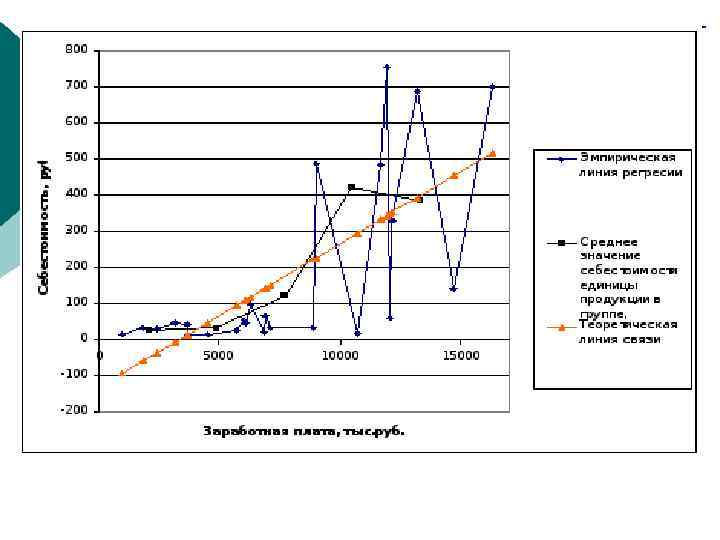 Элементарные методы анализа ¡ сопоставление двух параллельных рядов значений признаков (наличие прямой или обратной связи); ¡ графическое представление данных с помощью поля корреляции (наличие связи и предположения о степени тесноты) и эмпирической линии регрессии (предполагать направление связи и форму связи); ¡ построение аналитической группировки и корреляционных таблиц (благодаря группировке ряды уплотняются, и связь проявляетсяболее отчетливо).