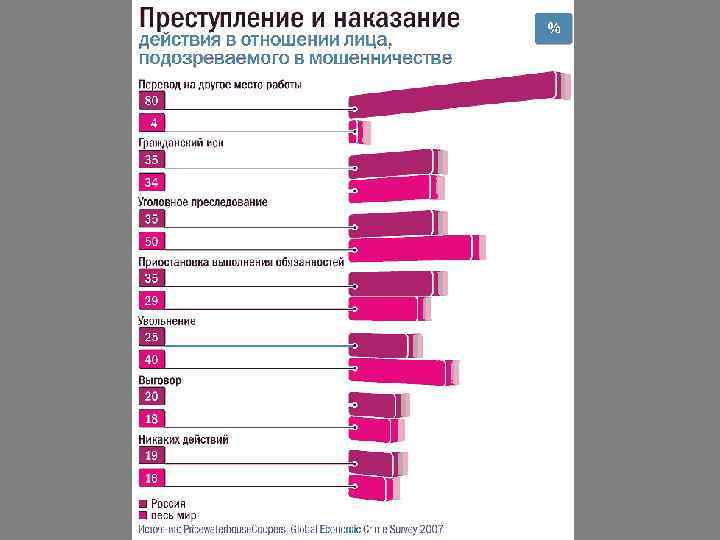 Несмотря на то, что взяточничество так распространено, россияне боятся наказания. «Только 7% заявили, что привлечение к уголовной ответственности их не страшит, - говорит директор по развитию Profi Online Research Елена Смирнова. Скорее всего, потому, что эти люди не дают и не берут «большие» взятки, которые могли бы повлечь, как сами они считают, серьезное наказание. К примеру, почти ¼ опрошенных отмечают, что боялись бы наказания, если речь шла о больших суммах денег. В остальных случаях, видимо, в России взятка взяткой, не считается» .