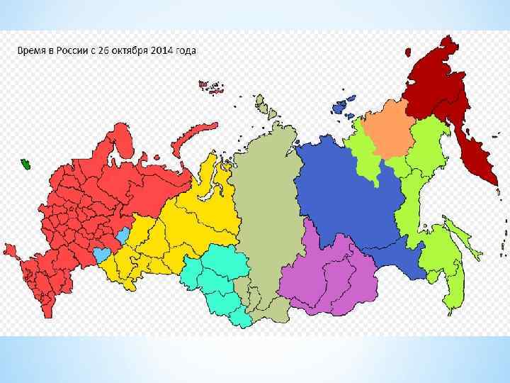 * 28 марта 2010 года произошли аналогичные события, когда 5 субъектов РФ стали применять местное время соседнего западного часового пояса. * Часовые пояса официально существовали до появления в 2011 году закона «Об исчислении времени» , который ввёл новое понятие — часовая зона, строго говоря, не соответствующее понятию административный часовой пояс применительно к России в 1919— 2010 годах. Согласно постановлению правительства от 31 августа 2011, на территории РФ установлено 9 часовых зон. * 1 июля 2014 года в закон были внесены поправки, изменяющие состав часовых зон и подразумевающие переход на постоянное «зимнее» время (который был отменён в 2011 году) с однократным переводом стрелок часов на один час назад 26 октября 2014 года. 9 июля поправки были одобрены Советом Федерации, 21 июля закон был подписан Президентом и вступил в силу.