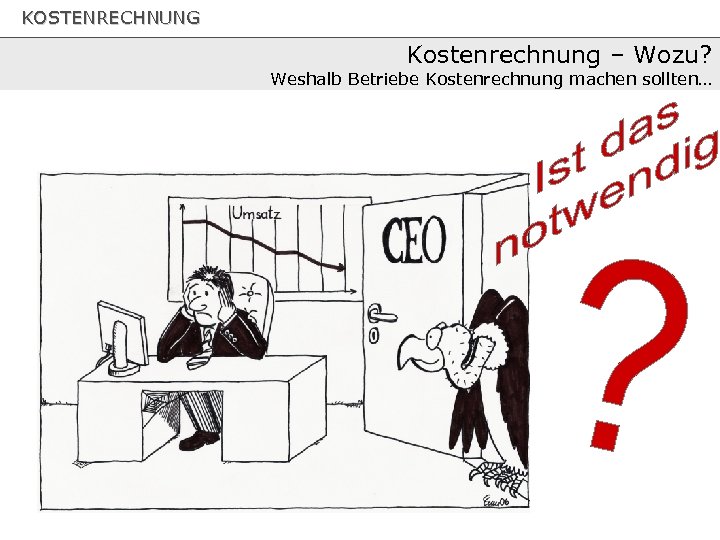 KOSTENRECHNUNG Kostenrechnung – Wozu? Weshalb Betriebe Kostenrechnung machen sollten…