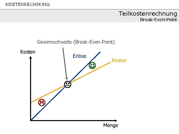 KOSTENRECHNUNG Teilkostenrechnung Break-Even-Point Gewinnschwelle (Break-Even-Point) Kosten Erlöse Kosten Menge