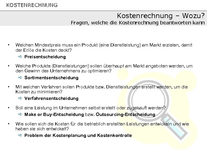 KOSTENRECHNUNG Kostenrechnung – Wozu? ? ? Wie ist das möglich? ? ?
