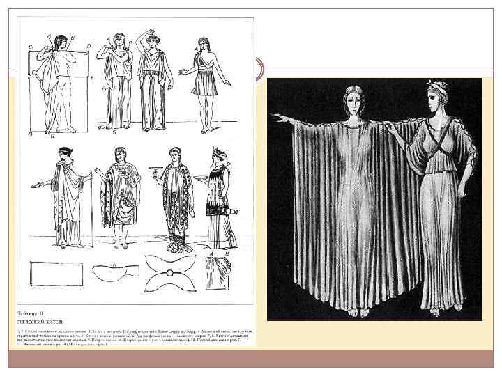 Реализация форм античного костюма целиком зависит только от умения сочетать пластические свойства ткани с расположением ее на теле, с умением в необходимом месте закрепить или освободить ткань.