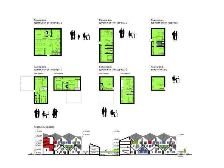 Типы домов в зависимости от количества этажей одноэтажные: а — в одном уровне; б — в разных уровнях; двухэтажные: в двух уровнях: в — мансардные; г — с неполной застройкой 2 го этажа; д — с полной застройкой 2 го этажа; в разных уровнях: е — с неполной застройкой 2 го этажа; ж — с полной застройкой 2 го этажа