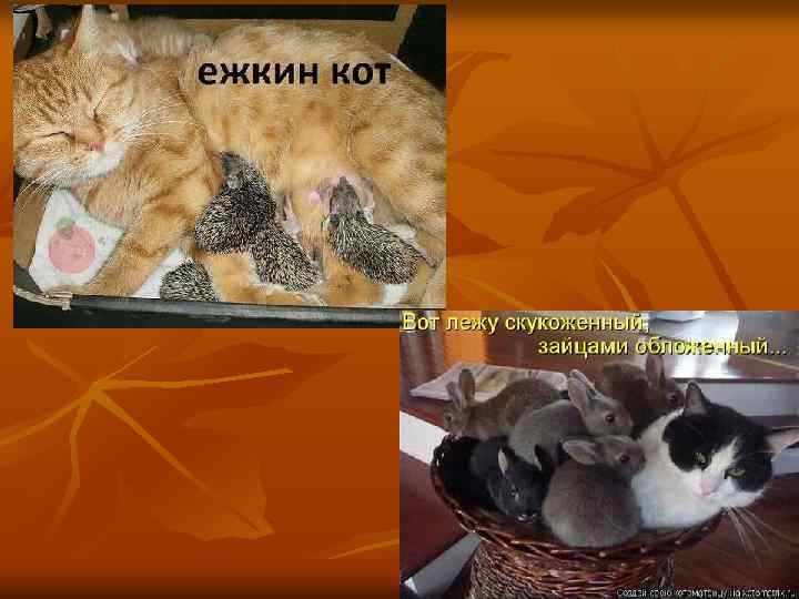 Стоит задуматься! n "Чем больше узнаю людей, тем больше я люблю животных!". Умерла ежиха. но кошка не дала погибнуть её малышам, потому что она - МАМА!!!