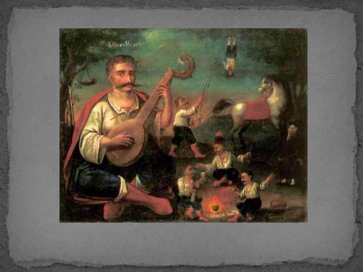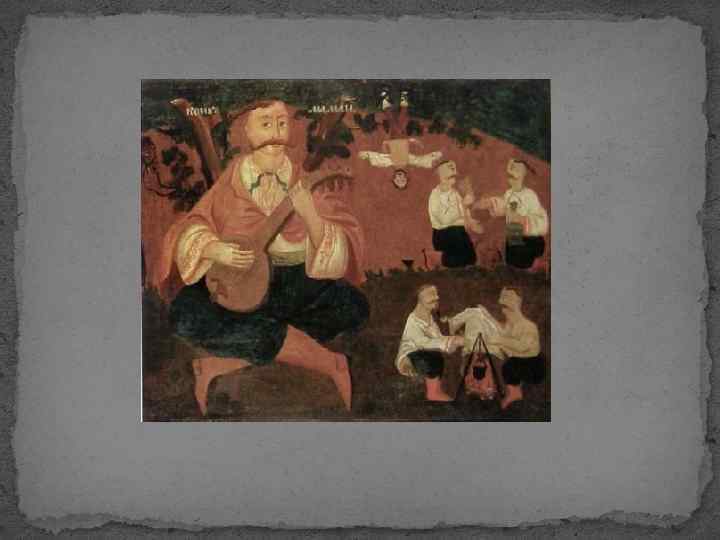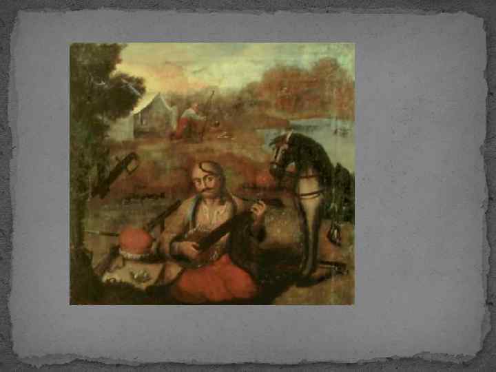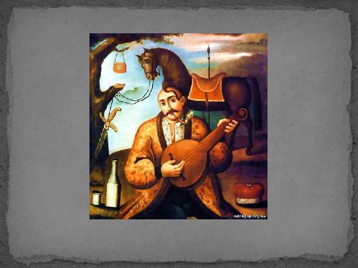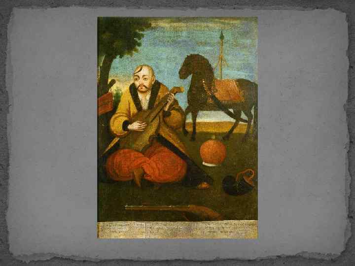 18 століття Невідомий художник. Козакбандурист. XVIII ст. Тиньк, олія. 40, 7 х33, 6. Національний художній музей України.