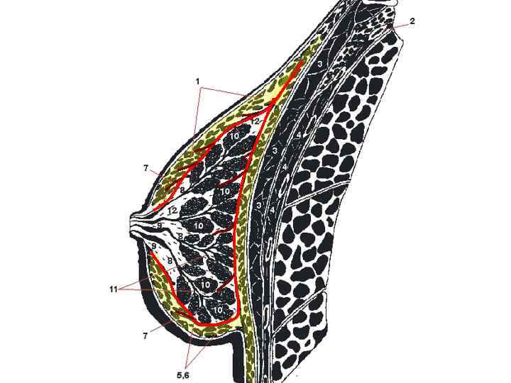 Соединительнотканный компонент • Опорная соединительная ткань (отроги расщепленной поверхностной фасции) – связки Купера • Ложевая (мантильная)