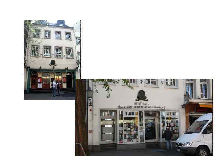 Дюсельдорф, Бюлькерштрассе, 5 В цьому маленькому будиночку 13 грудня 1797 року народився Генріх Гейне – найстарший з чотирьох дітей Батько, Самсон Гейне – колишній офіцер гвардії, торгував тканинами, та йому не дуже щастило, тому родина бідувала. Людиною був лагідною, доброю Мати Бетті Гельдерн – дочка відомого лікаря, жінка освічена, багато читала і робила усе, щоб її діти стали культурними освіченими людьми