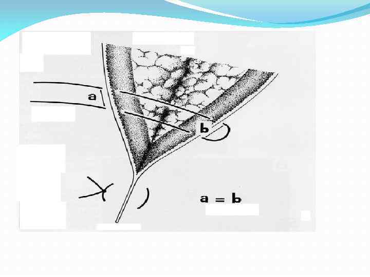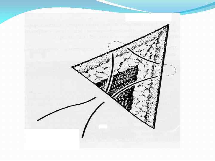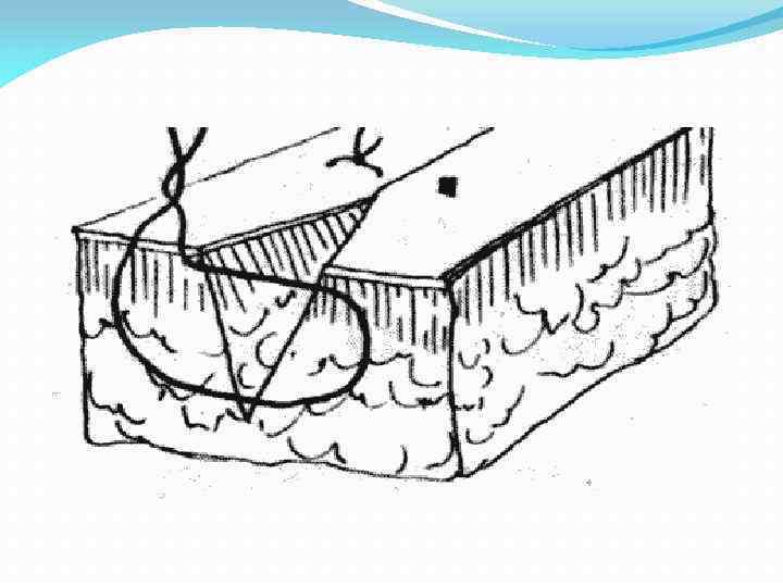 Угловой сопоставляющий шов Кровоснабжение треугольных участков кожи, как правило, снижено. Поэтому их соединение обычным узловым швом может привести к некрозу тканей. В этих случаях без угрозы кровоснабжению остроугольных участков кожи можно накладывать только угловые сопоставляющие швы. Их основная особенность состоит в том, что на угловом участке шовная нить проходит параллельно поверхности кожи. В зависимости от формы раны используют различные варианты углового шва
