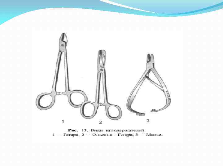 Для наложения швов ручным способом наряду с хирургической иглой и нитью необходим иглодержатель и пинцет. Рука хирурга вместе с иглодержателем, заряженным иглой, образует сложную динамическую конструкцию для выполнения высокоточных действий. Пинцет относится к вспомогательным инструментам для фиксации тканей. Однако только взаимодополняющие синх ронные движения иглодержателем и пинцетом обеспечивают ка чественное наложение хирургических швов.